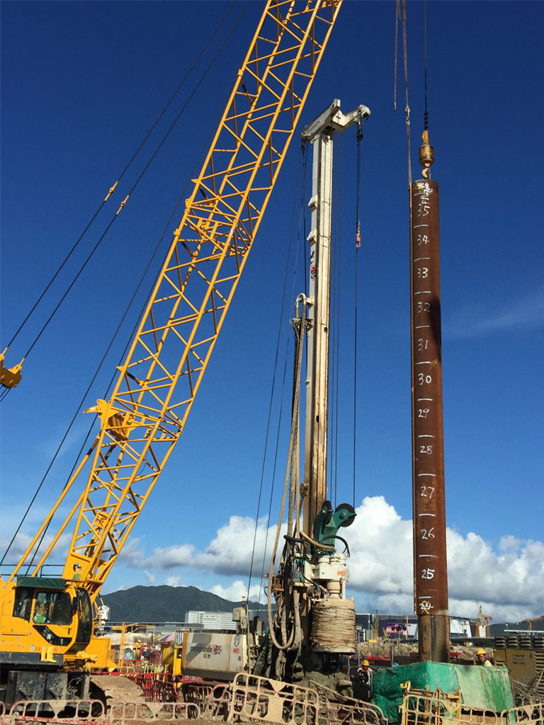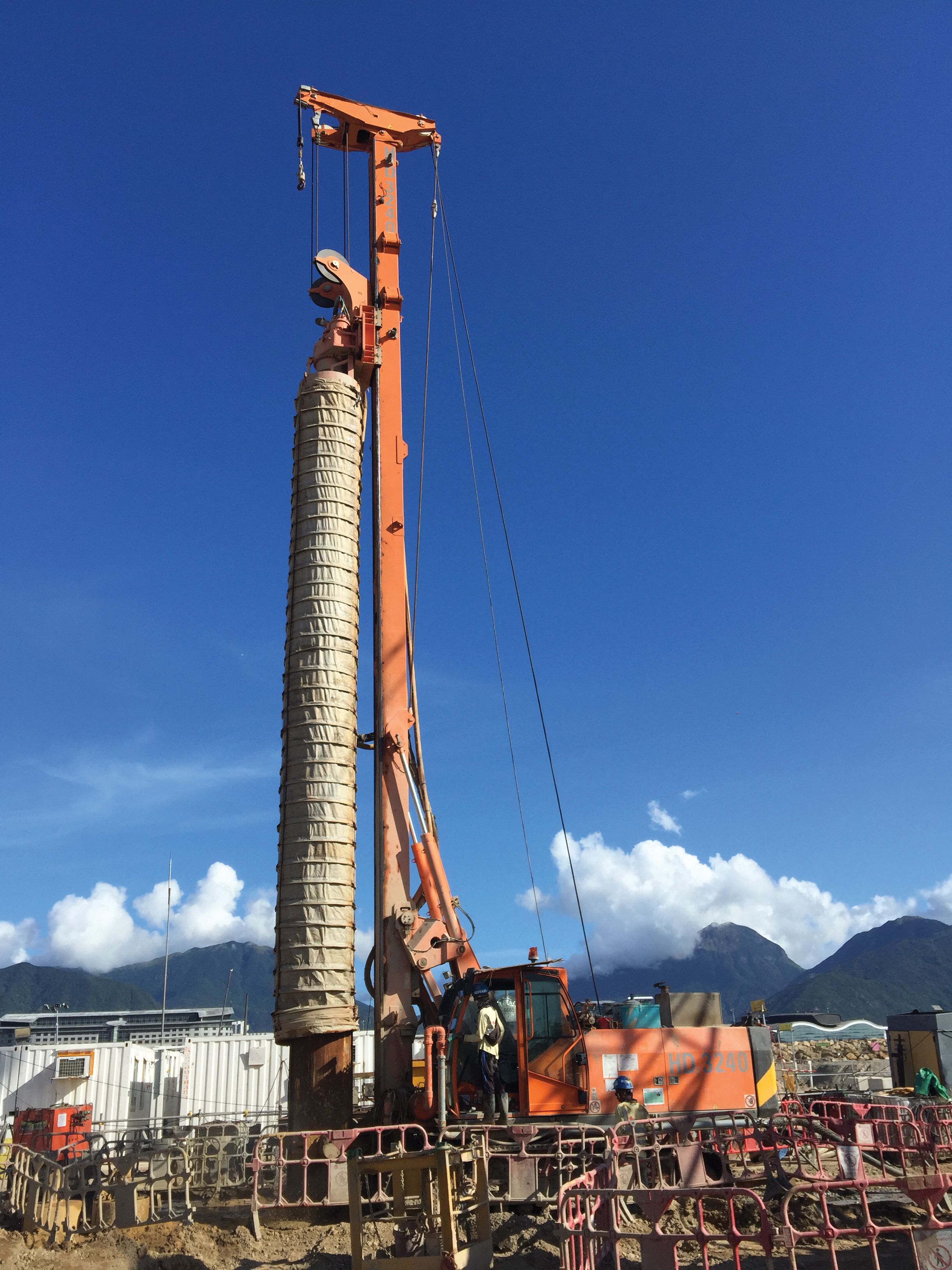 目前,汉机的客户已在三跑部分工程上使用约十多台 HD 钻孔机,如:HD325P、HD3250、HD3240钻机等及Casagrande C35钻机,用于813毫米连续式互扣桩和610毫米预钻孔。此外,我们还提供大量适用于预钻孔工字桩、支护桩和水井孔等应用的潜孔钻具,包括24吋潜孔锤、813毫米扩孔钻头和环状钻头。
