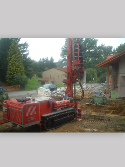 In order to install geothermal systems for houses and buildings, holes need to be drilled on the ground, using mostly rotary mud drilling with mud pump (bringing cuttings to the surface), and