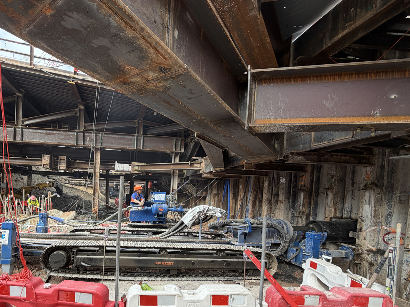 HZ25T 水平横向钻孔机配备 HR6000 高扭力动力头 (扭矩6 公吨米), 设有履带底盘方便移动, 及4 根液压水平器方便校准钻孔位置。 钻机动力由215 HP 电马达推动的液压动力站提供。