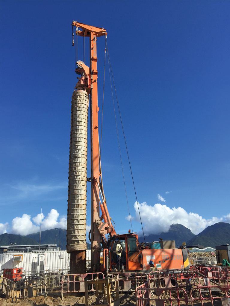 目前,汉机的客户已在三跑部分工程上使用约十多台 HD 钻孔机,如:HD325P、HD3250、HD3240钻机等及Casagrande C35钻机,用于813毫米连续式互扣桩和610毫米预钻孔。此外,我们还提供大量适用于预钻孔工字桩、支护桩和水井孔等应用的潜孔钻具,包括24吋潜孔锤、813毫米扩孔钻头和环状钻头。