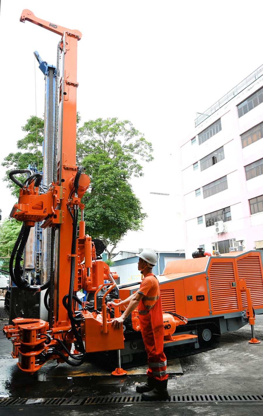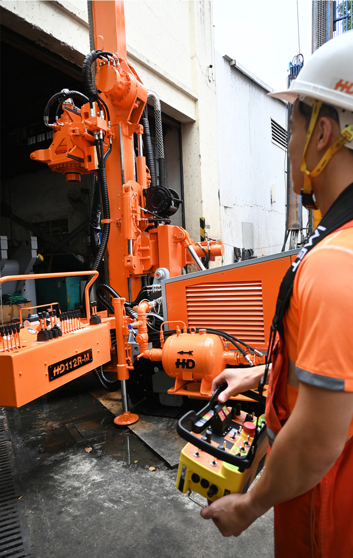 This HD112R-M hydraulic crawler drill was specially designed and built with the following features :