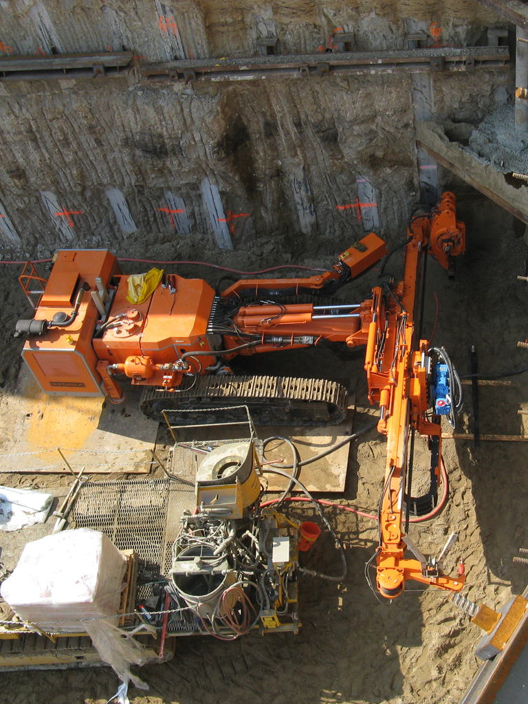 swing boom and super high pull back (15 tons) on drill mast for the heavy duty drilling work. The features allow it to work in limited access job site. The