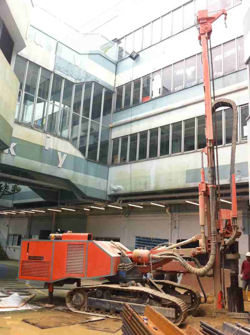 large diameter piles using high-torque rotators. The optional item, mast extension, enables the rig to drill with 6m long drill rod.