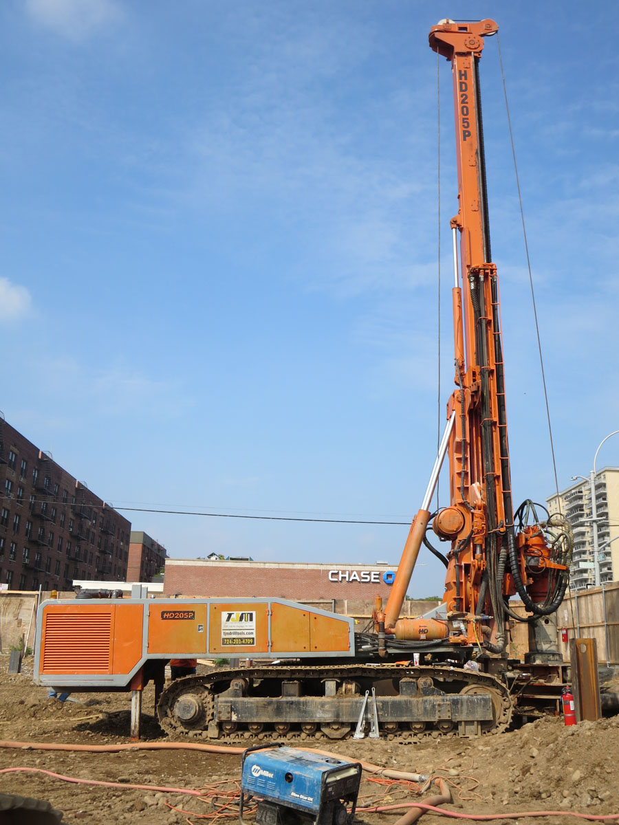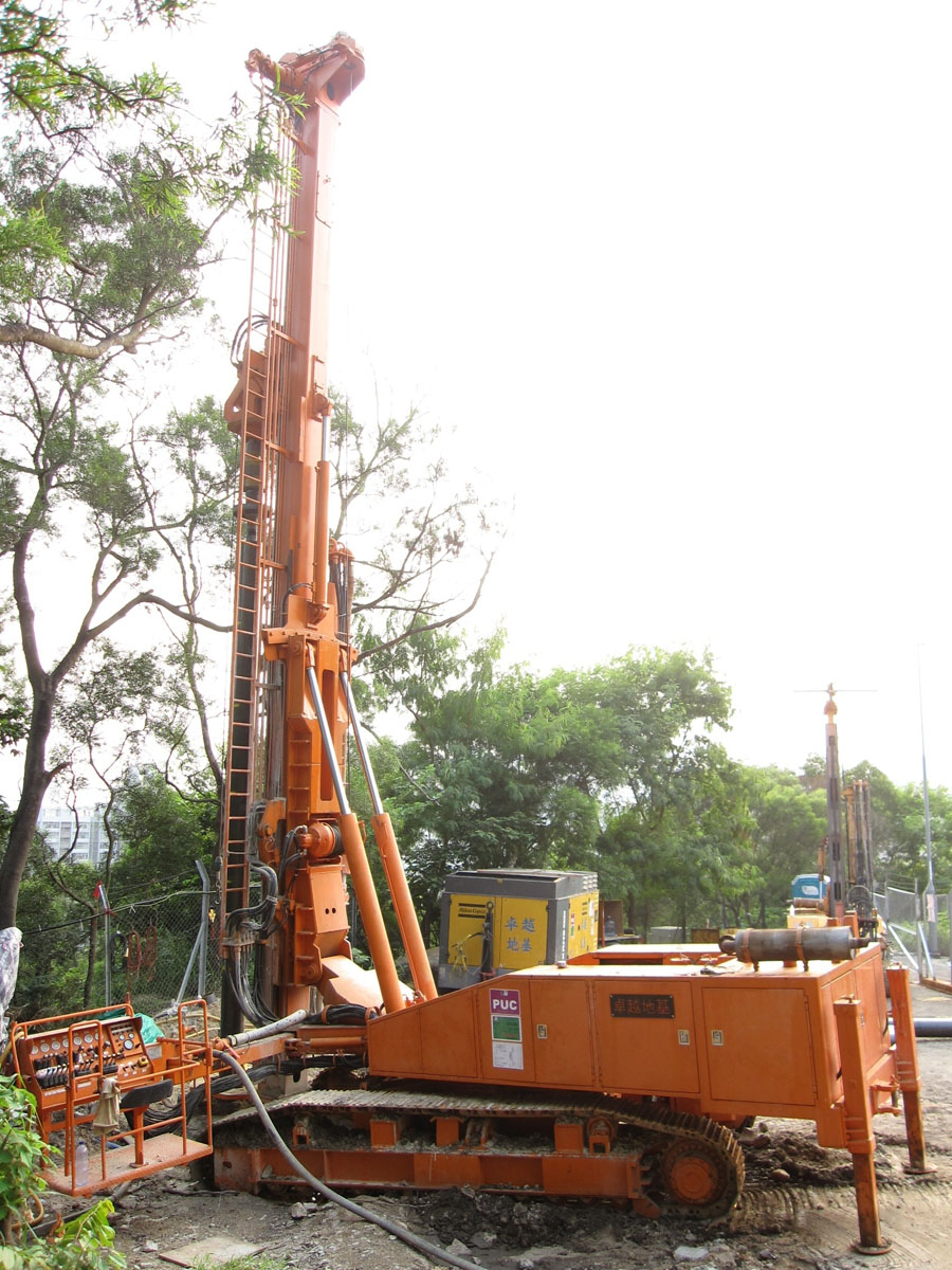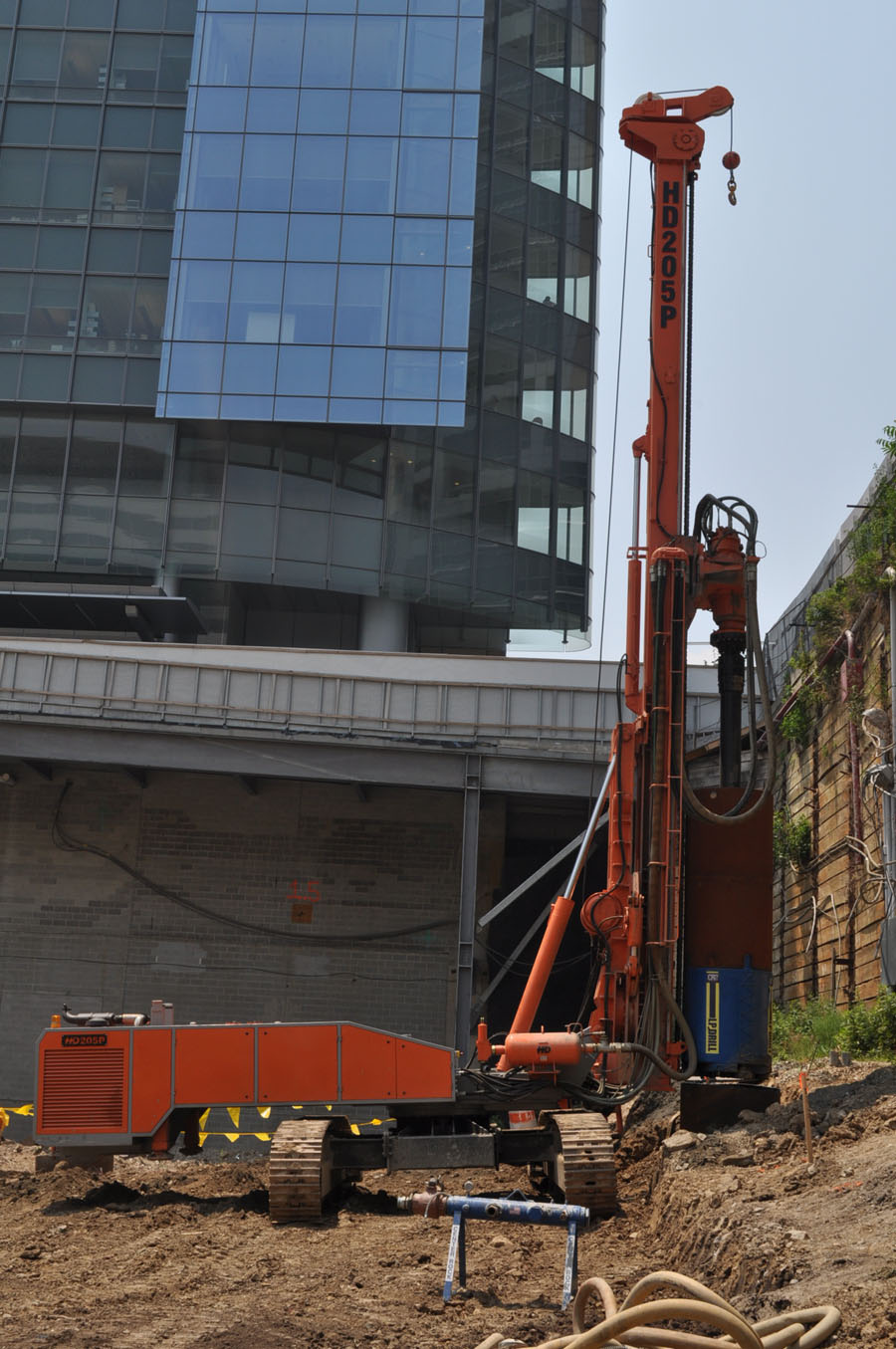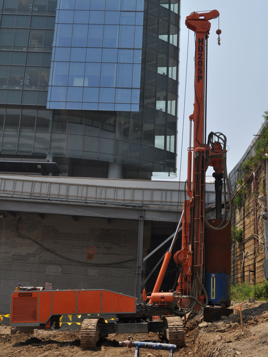 HD200, but is configured for mainly vertical piling and predrilling applications. The longer mast is capable of