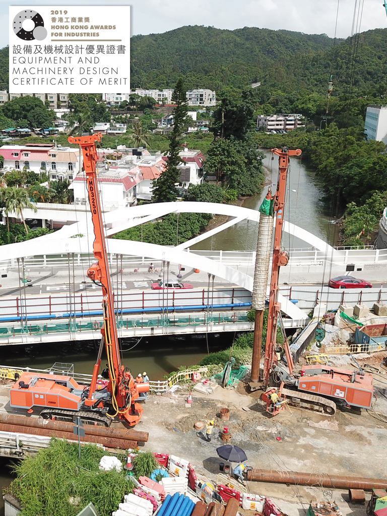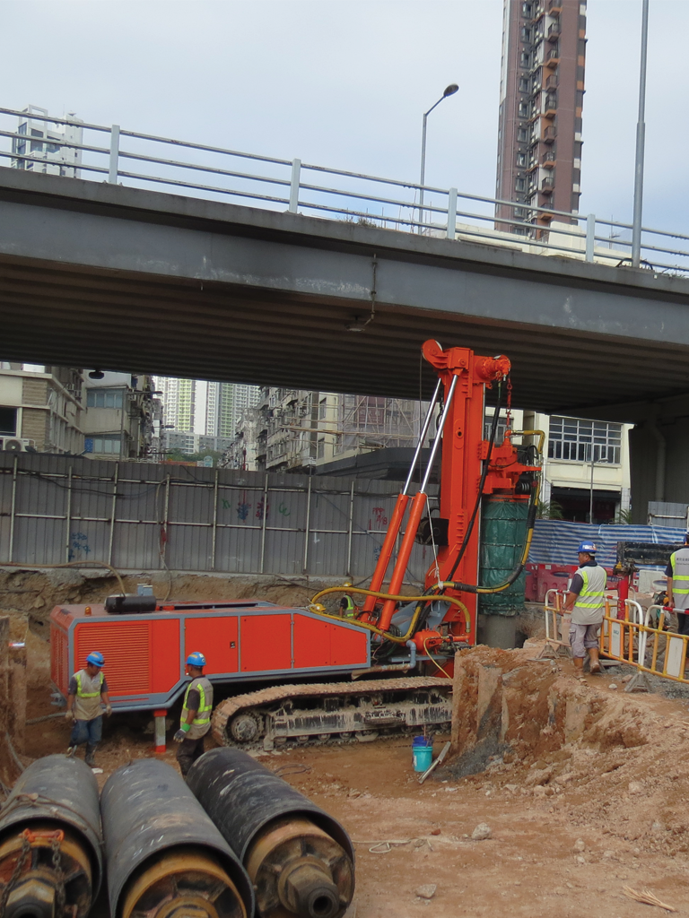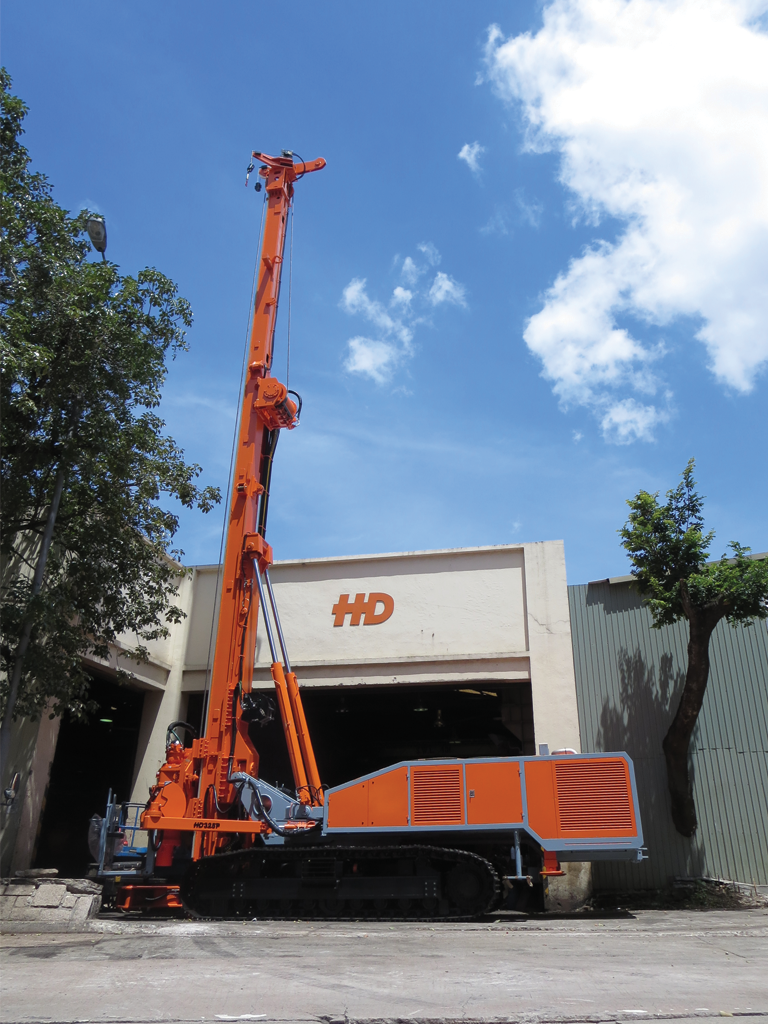 second generation of HD325 series drill rig, mainly for large dia. piling work, especially DTH hammer drilling 610 and 813 mm dia. The machine weights around